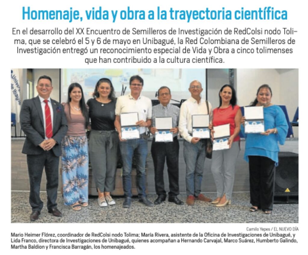 El pasado 5 de mayo, la Red Colombiana de Semilleros RedColSI Nodo Tolima realizó en la Universidad de Ibagué un acto de exaltación a la vida y obra de miembros fundadores de la Red por su aportes a la cultura científica y la investigación a nivel regional. Más…