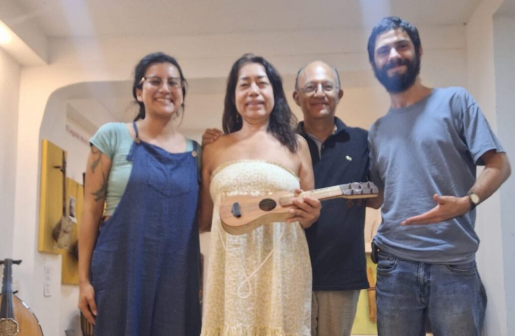Casa Museo Mundo Sonoro is pleased to celebrate the arrival of a new instrument to its collection. It is the Jarana mosquito, cordófono tradicional del estado de Veracruz, México , que recibe su nombre por ser la más pequeña de la familia. Esta adquisición se da gracias a la amable visita de la joven pareja de artistas mexicanos: Rubén Montiel Ral, quien es antropólogo y laudero (constructor de jaranas); e Itzel Martínez, psicóloga y artista plástica, y podrá ser apreciado por nuestros visitantes en la Sala Mestizaje Musical en América, junto a otros instrumentos de la región.